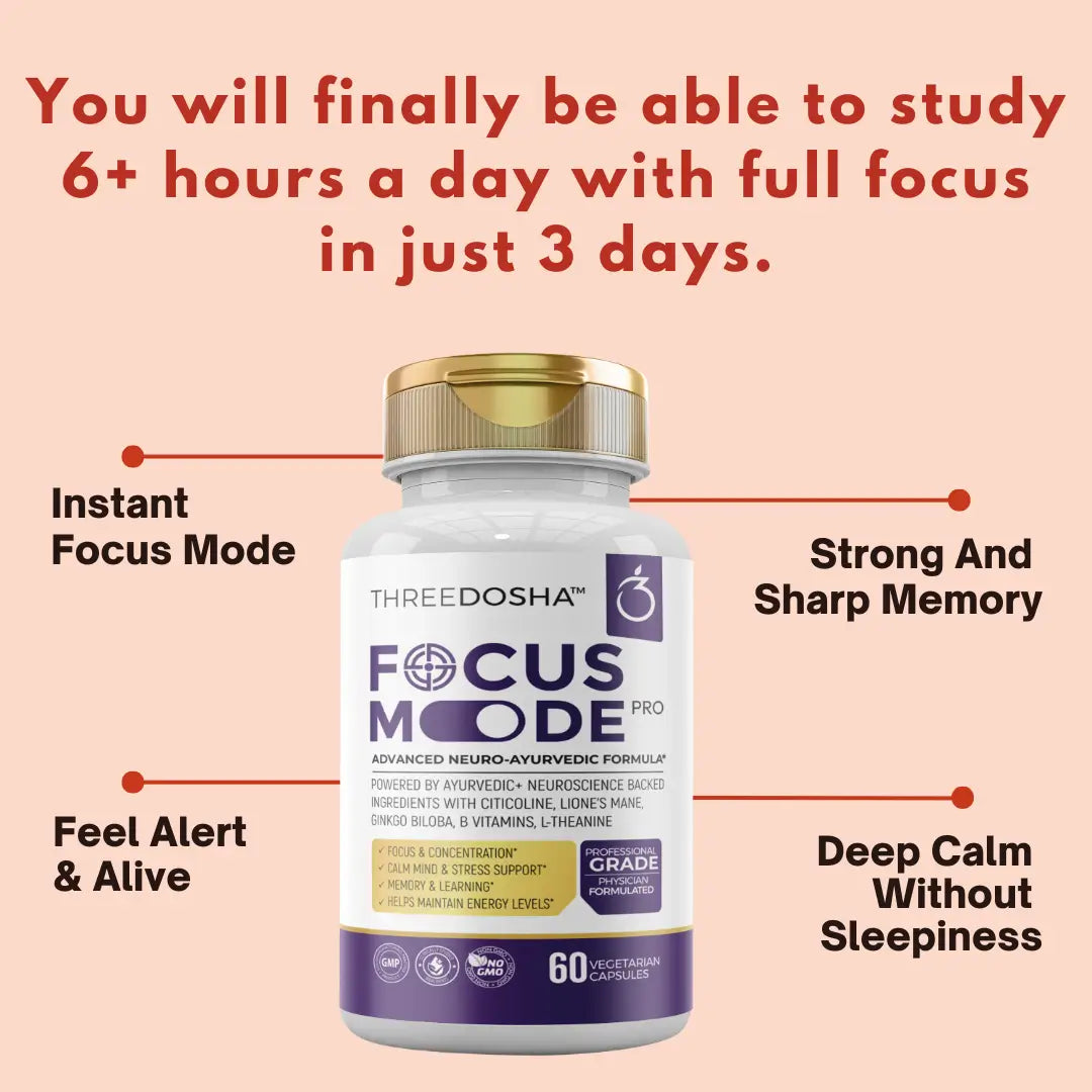 Focus Mode™ isn’t some generic brain booster. It’s a science-backed formula developed by Ayurvedic doctors, neuroscientists, and ex-Toppers—engineered for students and professionals, not old people.